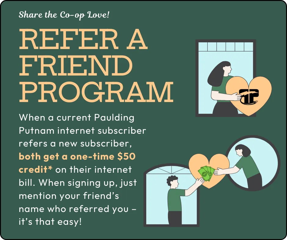 We’re not just another ISP tossing you a modem and a bill — we’re your partner in creating a home that’s connected, secure, and effortlessly yours. Blazing-fast fiber, personalized plans, and local support that feels like a friend on speed dial — that's the trusted Paulding Putnam cooperative difference since 1935.